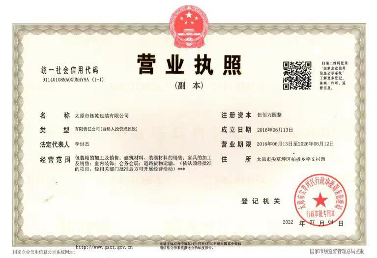 首頁 >> 公司介紹    太原市鈺乾包裝有限公司 - www.1603355.com